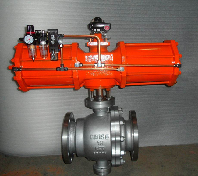 气动固定式球阀采用上下阀杆固定阀芯(轴支式)和可动密封座设计。工作更稳定。具有自动补偿功能、双向密封阀座之间无间隙回转时具有很大的剪切力及自洁功能。尤其适用于帝制纤维和有微小固体颗粒的悬浊液及粘性介质的通断。本产品可广泛应用于造纸、石化、化工、冶金、电力、环保、石油、轻工等工业部门的自动化控制系统中。