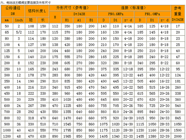三:电动法兰蝶阀主要技术参数