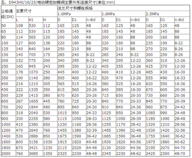 二、D943W不锈钢电动法兰蝶阀主要技术参数: